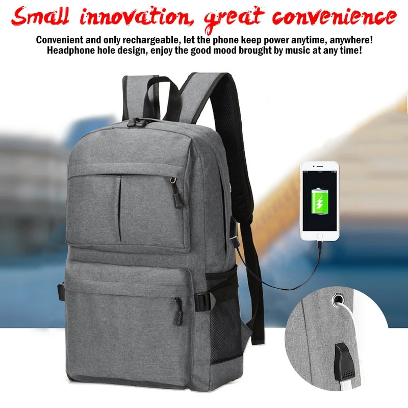 Waterproof Laptop Backpack Large Capacity Add Usb Charging And Headphone Port Laptop Bag(Grey)