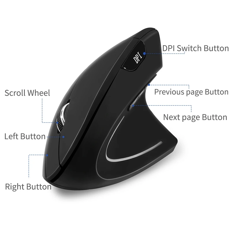 Ergonomic Vertical Mouse Wireless Bluetooth Optical Mouse 800/1200/1600Dpi Adjustable 5D Gaming Bac